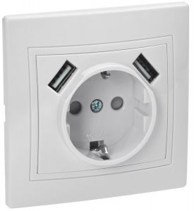 KVARTA Розетка с заземлением с защитными шторками 16А USBх2 2,1А РЮш10-1-КБ белый GENERICA