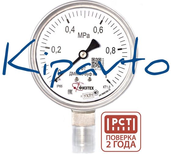 Манометр коррозионностойкий Физтех ДМ8008-ВУф Кс 0-1 МПа кт.1,0 d.100 IP65 M20_1,5 РШ SG, Силикон 4687205720450