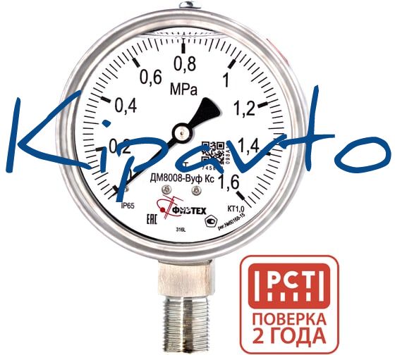 Манометр коррозионностойкий Физтех ДМ8008-ВУф Кс 0-1,6 МПа кт.1,0 d.100 IP65 M20_1,5 РШ SG, Силикон 4687205720481