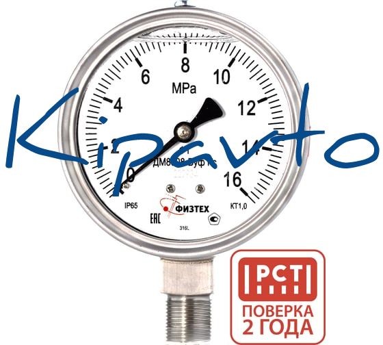 Манометр коррозионностойкий Физтех ДМ8008-ВУф Кс 0-16 МПа кт.1,0 d.100 IP65 M20_1,5 РШ SG, Силикон 4687205720597