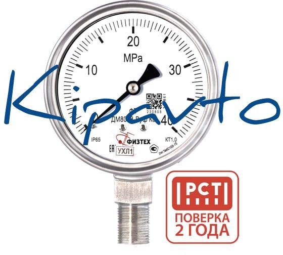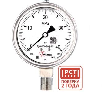 Манометр коррозионностойкий Физтех ДМ8008-ВУф Кс 0-40 МПа кт.1,0 d.100 IP65 M20_1,5 РШ SG Б/запол 4687205720757