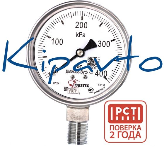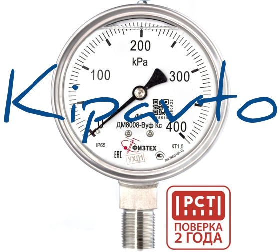 Манометр коррозионностойкий Физтех ДМ8008-ВУф Кс 0-400 кПа кт.1,0 d.100 IP65 M20_1,5 РШ SG, Б/запол 4687205720788