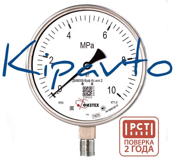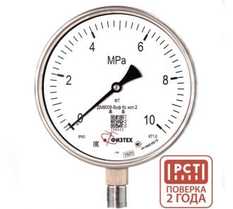 Манометр коррозионностойкий Физтех ДМ8008-ВУф Кс исп 2 0-10 МПа кт.1,0 d.160 IP65 M20_1,5 РШ SG, Силикон 4687205724564