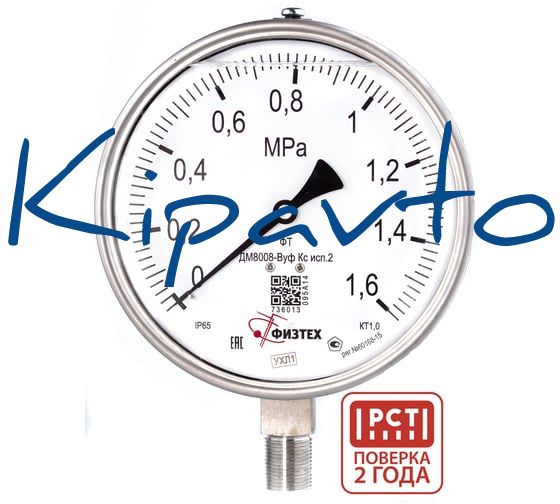 Манометр коррозионностойкий Физтех ДМ8008-ВУф Кс исп 2 0-1,6 МПа кт.1,0 d.160 IP65 M20_1,5 РШ SG, Глицерин 4687205724526