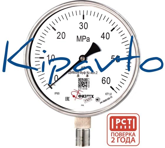 Манометр коррозионностойкий Физтех ДМ8008-ВУф Кс исп 2 0-60 МПа кт.1,0 d.160 IP65 M20_1,5 РШ SG, Б/запол 4687205724878