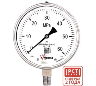 Манометр коррозионностойкий Физтех ДМ8008-ВУф Кс исп 2 0-60 МПа кт.1,0 d.160 IP65 M20_1,5 РШ SG, Глицерин 4687205724885
