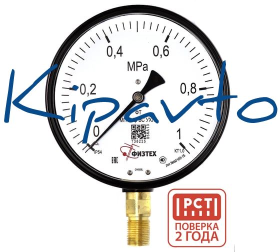 Манометр пылевлагозащищенный Физтех МП4-Уф 0-1 МПа кт.1,0 d.160 IP54 M20_1,5 РШ БС УХЛ1 4687205629586