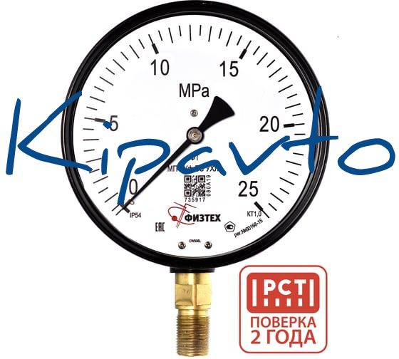 Манометр пылевлагозащищенный Физтех МП4-Уф 0-25 МПа кт.1,0 d.160 IP54 M20_1,5 РШ БС УХЛ1 4687205630087