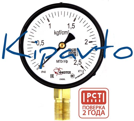 Манометр технический Физтех МП3-Уф 0-2,5 кгс/см2 кт.1,5 d.100 IP40 M20_1,5 РШ 4687205638465