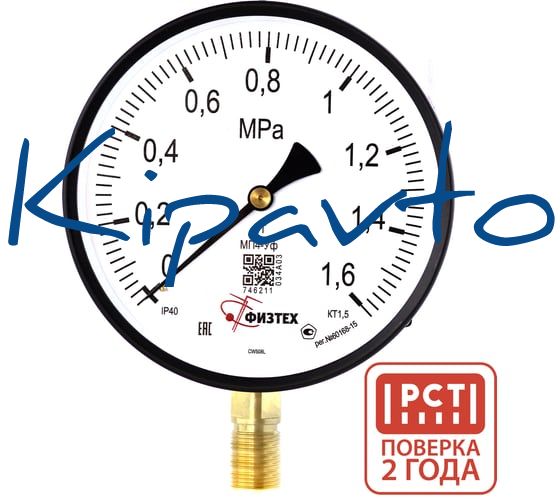 Манометр технический Физтех МП4-Уф 0-1,6 МПа кт.1,5 d.160 IP40 G1/2 РШ 4687205629685