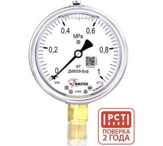 Манометр виброустойчивый Физтех ДМ8008-ВУф 0-1 МПа, кт1.0, d100, IP54 G,1/2 РШ, без заполнения 4687205640024