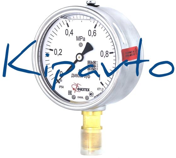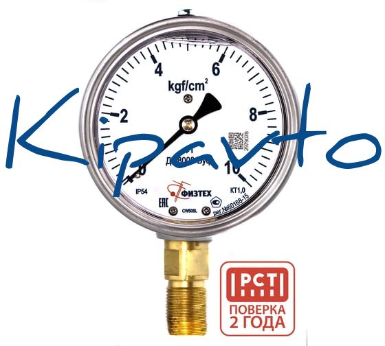 Манометр виброустойчивый Физтех ДМ8008-ВУф 0-10 кгс/см2 кт.1,0 d.100 IP54 M20_1,5 РШ, Глицерин 4687206463653
