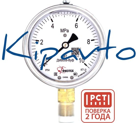Манометр виброустойчивый Физтех ДМ8008-ВУф 0-10 МПа, кт1.0, d100, IP54 G,1/2 РШ, силикон 4687205640109