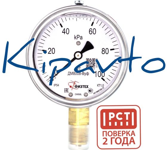 Манометр виброустойчивый Физтех ДМ8008-ВУф 0-100 кПа кт.1,0 d.100 IP54 M20x1,5 РШ, Силикон 4687205455116