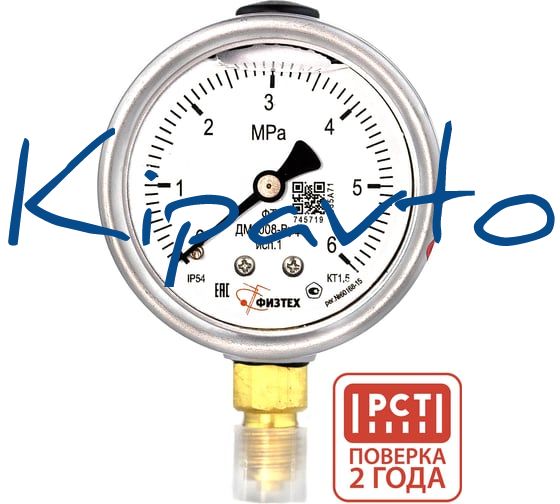 Манометр виброустойчивый Физтех ДМ8008-ВУф исп 1 0-6 МПа кт.1,5 d.63 IP54 M12x1,5 РШ, Силикон 4687205454874