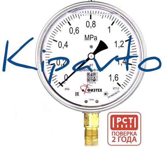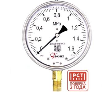 Манометр виброустойчивый Физтех ДМ8008-ВУф исп 2 0-1,6 МПа кт.1,0 d.160 IP54 M20x1,5 РШ, Глицерин 4687205454737