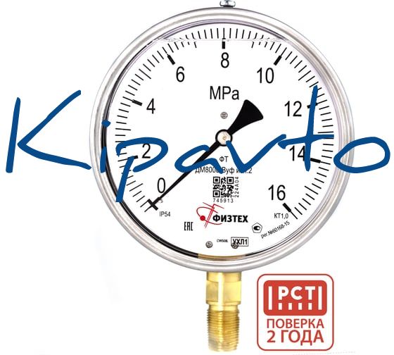 Манометр виброустойчивый Физтех ДМ8008-ВУф исп 2 0-16 МПа кт.1,0 d.160 IP54 M20x1,5 РШ, Глицерин 4687205454782