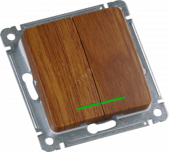 MASTER Выключатель двухклавишный с индикацией, скрытой установки, в рамку, дуб