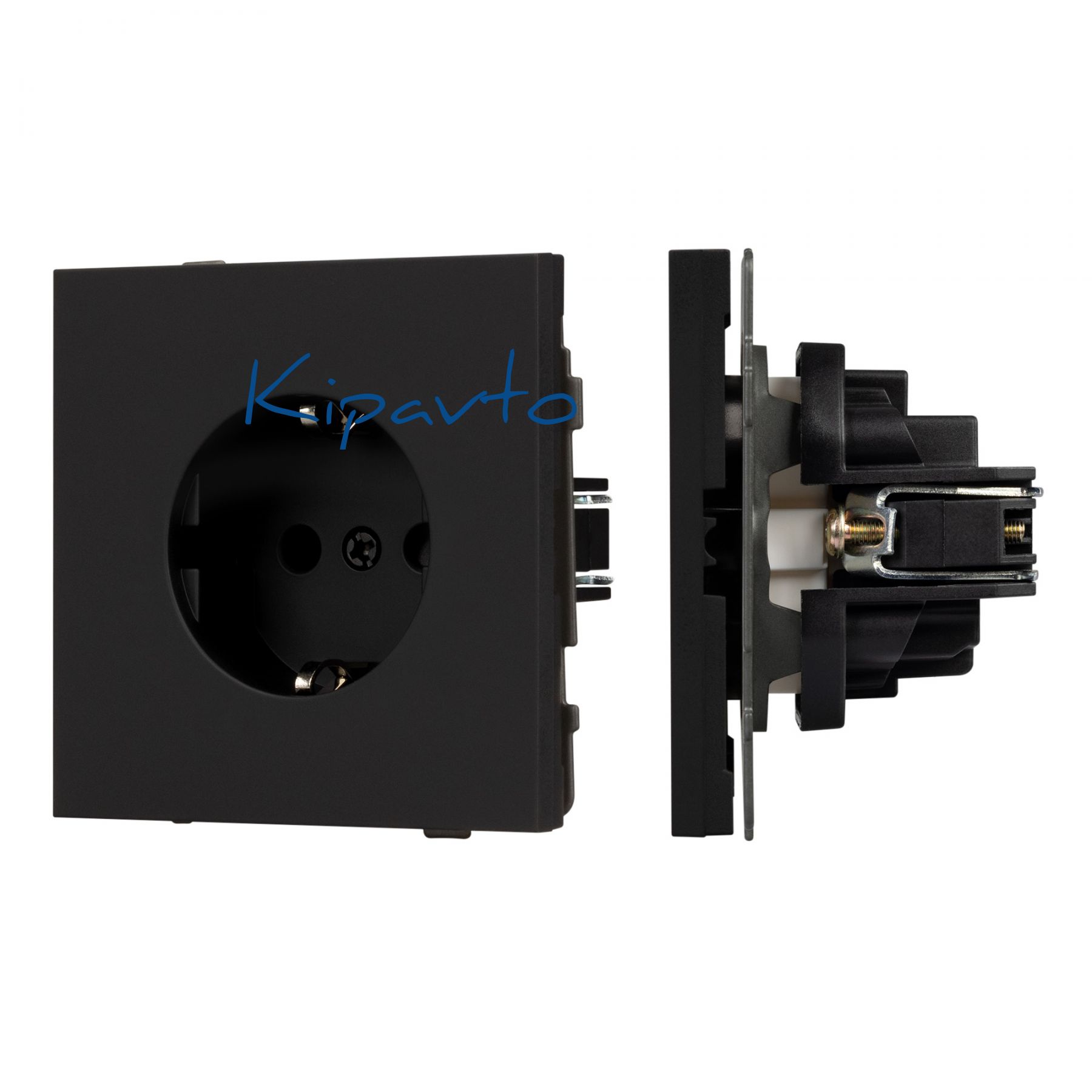 Механизм розетки с заземление совместим с рамками серии TENDO, создает утонченный минималистичный вид. Скрытый тип монтажа позволяет гармонично встроить в интерьер любого современного дизайн-проекта. Видимая часть механизма выполнена из высококачественного пластика черного цвета и имеет покрытие Soft-Touch. Розетка оснащена защитными шторками, которые защищают механизм устройства от повреждений и загрязнений, а также обеспечивают безопасное использование для каждого пользователя. Металлический суппорт окрашен порошковой краской в несколько слоев и выполнен из металла толщиной 1,5мм, что обеспечивает безопасность и уверенность в установке. А усиленные распорные (монтажные) лапки надежно фиксируют механизм в стандартном установочном подрозетнике. На каждой стороне суппорта размещены фиксирующие элементы, позволяющие комбинировать механизмы в системы до 5шт как горизонтально, так и вертикально, под соответствующую рамку.