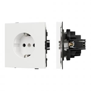 Механизм розетки с заземление совместим с рамками серии TENDO, создает утонченный минималистичный вид. Скрытый тип монтажа позволяет гармонично встроить в интерьер любого современного дизайн-проекта. Видимая часть механизма выполнена из высококачественного пластика белого цвета и имеет покрытие Soft-Touch. Розетка оснащена защитными шторками, которые защищают механизм устройства от повреждений и загрязнений, а также обеспечивают безопасное использование для каждого пользователя. Металлический суппорт окрашен порошковой краской в несколько слоев и выполнен из металла толщиной 1,5мм, что обеспечивает безопасность и уверенность в установке. А усиленные распорные (монтажные) лапки надежно фиксируют механизм в стандартном установочном подрозетнике. На каждой стороне суппорта размещены фиксирующие элементы, позволяющие комбинировать механизмы в системы до 5шт как горизонтально, так и вертикально, под соответствующую рамку.