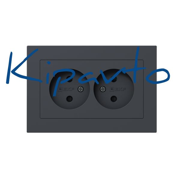 Механизм розетки двойной 16А без заземления со шторками с рамкой графит Эпика EKF