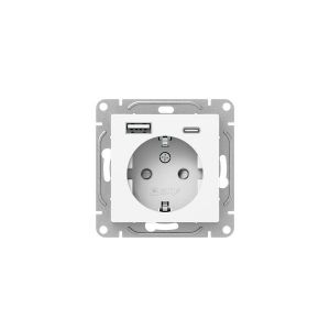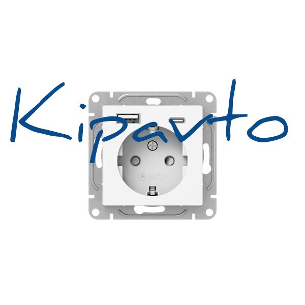 Механизм розетки с USB-A+С - 2шт, 16А, с заземлением, со шторками, белый Эпика EKF