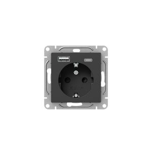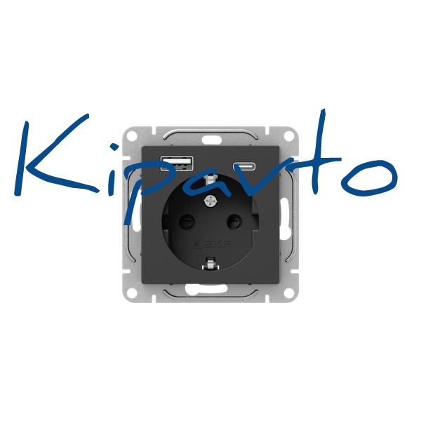 Механизм розетки с USB-A+С - 2шт, 16А, с заземлением, со шторками, чёрный Эпика EKF