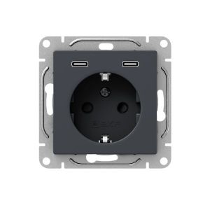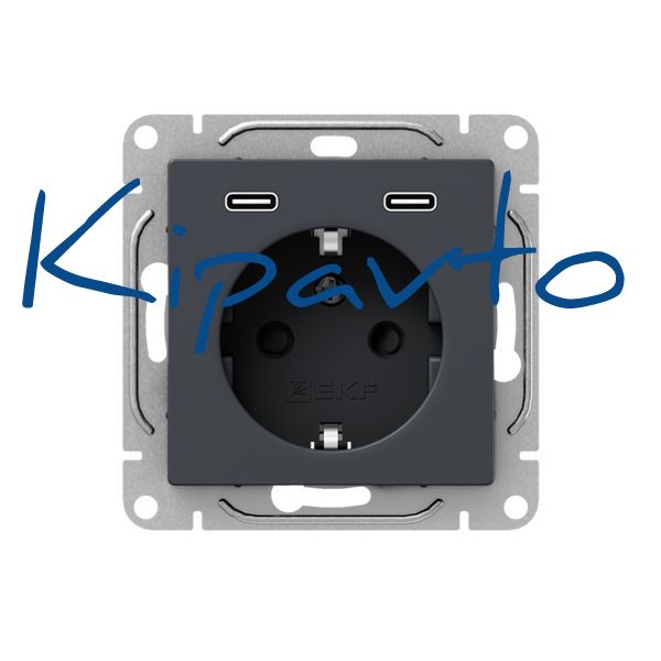Механизм розетки с USB-C - 2шт 16А с заземлением со шторками графит Эпика EKF