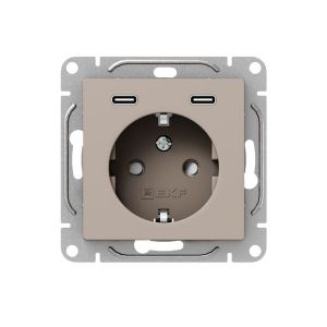 Механизм розетки с USB-C - 2шт 16А с заземлением со шторками кремовый Эпика EKF