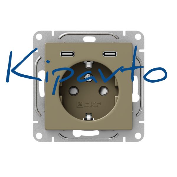 Механизм розетки с USB-C - 2шт 16А с заземлением со шторками шампань Эпика EKF