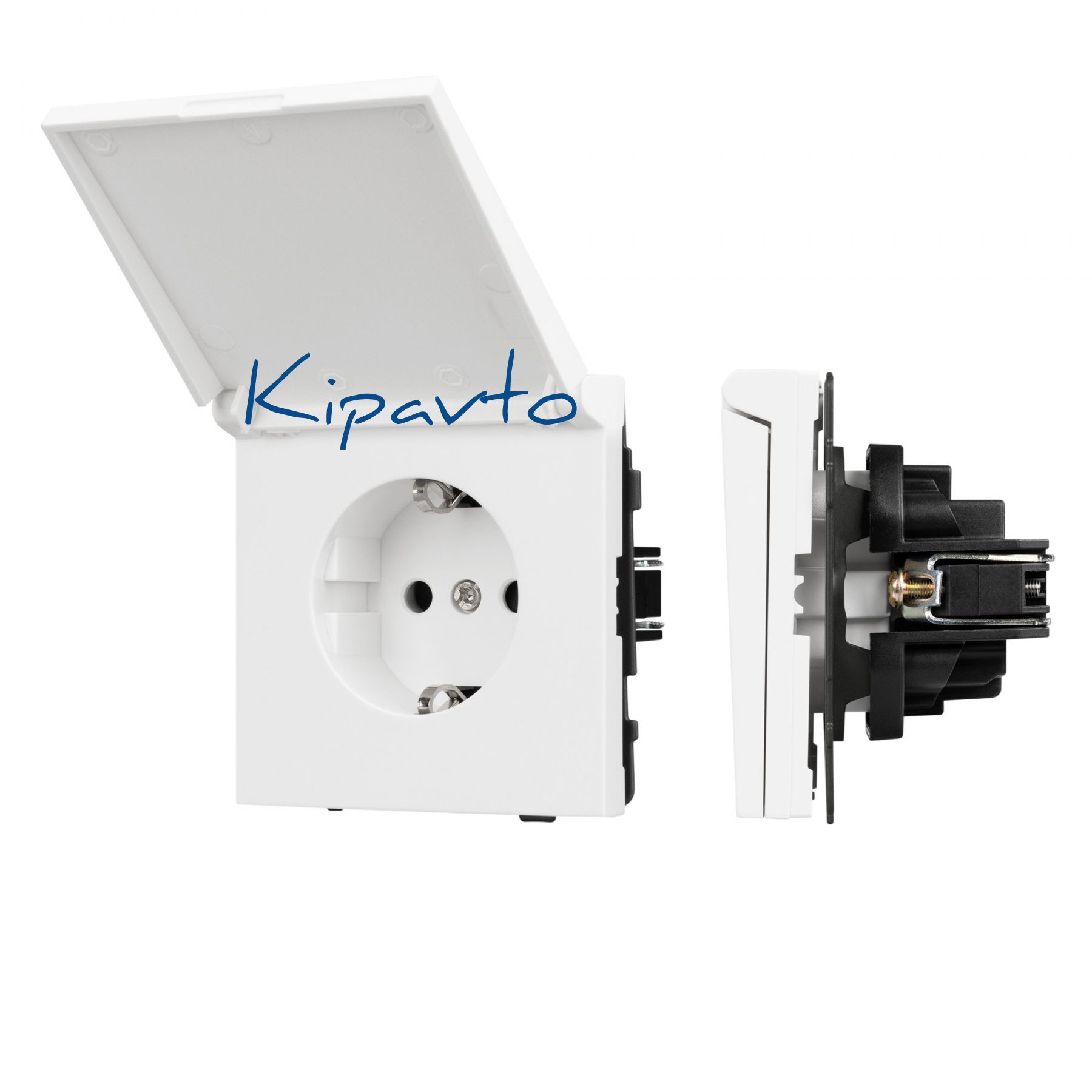 Механизм розетки с заземлением и влагозащитной крышкой совместим с рамками серии TENDO, создает утонченный минималистичный вид. Скрытый тип монтажа позволяет гармонично встроить в интерьер любого современного дизайн-проекта. Видимая часть механизма выполнена из высококачественного пластика белого цвета и имеет матовое покрытие. Розетка оснащена защитными шторками, которые защищают механизм устройства от повреждений и загрязнений, а также обеспечивают безопасное использование для каждого пользователя. Наличие влагозащитной крышки позволяет размещать данный тип розеток в ванных комнатах, санузлах, кухнях или МОП. А усиленные распорные (монтажные) лапки надежно фиксируют механизм в стандартном установочном подрозетнике. На каждой стороне суппорта размещены фиксирующие элементы, позволяющие комбинировать механизмы в системы до 5шт как горизонтально, так и вертикально, под соответствующую рамку.