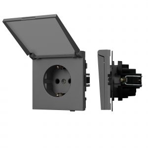 Механизм розетки с заземлением и влагозащитной крышкой совместим с рамками серии TENDO, создает утонченный минималистичный вид. Скрытый тип монтажа позволяет гармонично встроить в интерьер любого современного дизайн-проекта. Видимая часть механизма выполнена из высококачественного пластика серого цвета и имеет покрытие Soft-Touch. Розетка оснащена защитными шторками, которые защищают механизм устройства от повреждений и загрязнений, а также обеспечивают безопасное использование для каждого пользователя. Наличие влагозащитной крышки позволяет размещать данный тип розеток в ванных комнатах, санузлах, кухнях или МОП. А усиленные распорные (монтажные) лапки надежно фиксируют механизм в стандартном установочном подрозетнике. На каждой стороне суппорта размещены фиксирующие элементы, позволяющие комбинировать механизмы в системы до 5шт как горизонтально, так и вертикально, под соответствующую рамку.