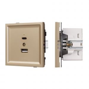 Механизм розетки с быстрой USB зарядкой, совместимый с рамками серии TENDO, создает утонченный минималистичный вид. Наличие USB Type A и Type C портов позволяет существенно сократить количество используемых розеточных постов, сохраняя единую стилистику интерьера современного дизайн-проекта. Оба разъема поддерживают протокол быстрой зарядки Quick Charge QC 3.0, помимо этого для разъема Type C доступен протокол Power Delivery. Выходные параметры для данных типов портов при этом составляют 20W. Суппорт окрашен порошковой краской и выполнен из металла толщиной 1,5мм, что обеспечивает безопасность и уверенность в установке. На каждой стороне суппорта размещены фиксирующие элементы, позволяющие комбинировать механизмы в системы до 5шт как горизонтально, так и вертикально. Для активации функции быстрой зарядки необходимо использовать специализированный зарядный кабель, который предназначен для работы с зарядными устройствами повышенной мощности.