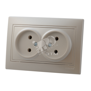 Мира Розетка двойная без заземления керамика жемчужно-белый перламутр со вставкой