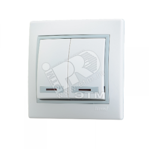 MIRA Выключатель двухклавишный с подсветкой белый с серой вставкой