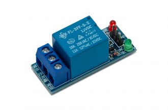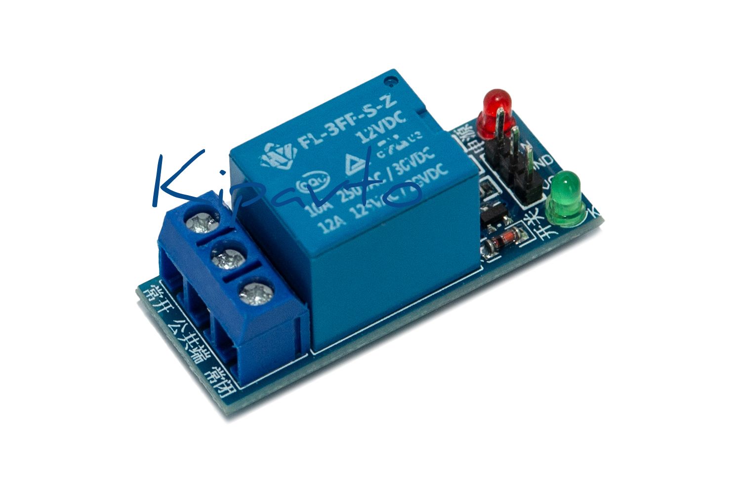 Модуль содержит одно реле, имеющее одну полную группу контактов (NO-С -NC). На верхней части платы указано назначение входных контактов, на нижней части изображена схема подключения выходных контактов. Реле оснащено двумя светодиодами. Красный светодиод предназначен для индикации питания 12В, зеленый – для индикации срабатывания реле. Максимальное напряжение на контактах реле - 250В – переменное, 30В – постоянное