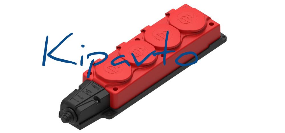 MultiSet Колодка 4х розетка 2К+З каучуковая 16А/250В IP44 Красная
