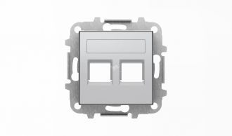 Накладка для двух суппортов/разъемов типа 2017... и/или 2018... со шторками и полем для надписи SKY серебристый алюмини