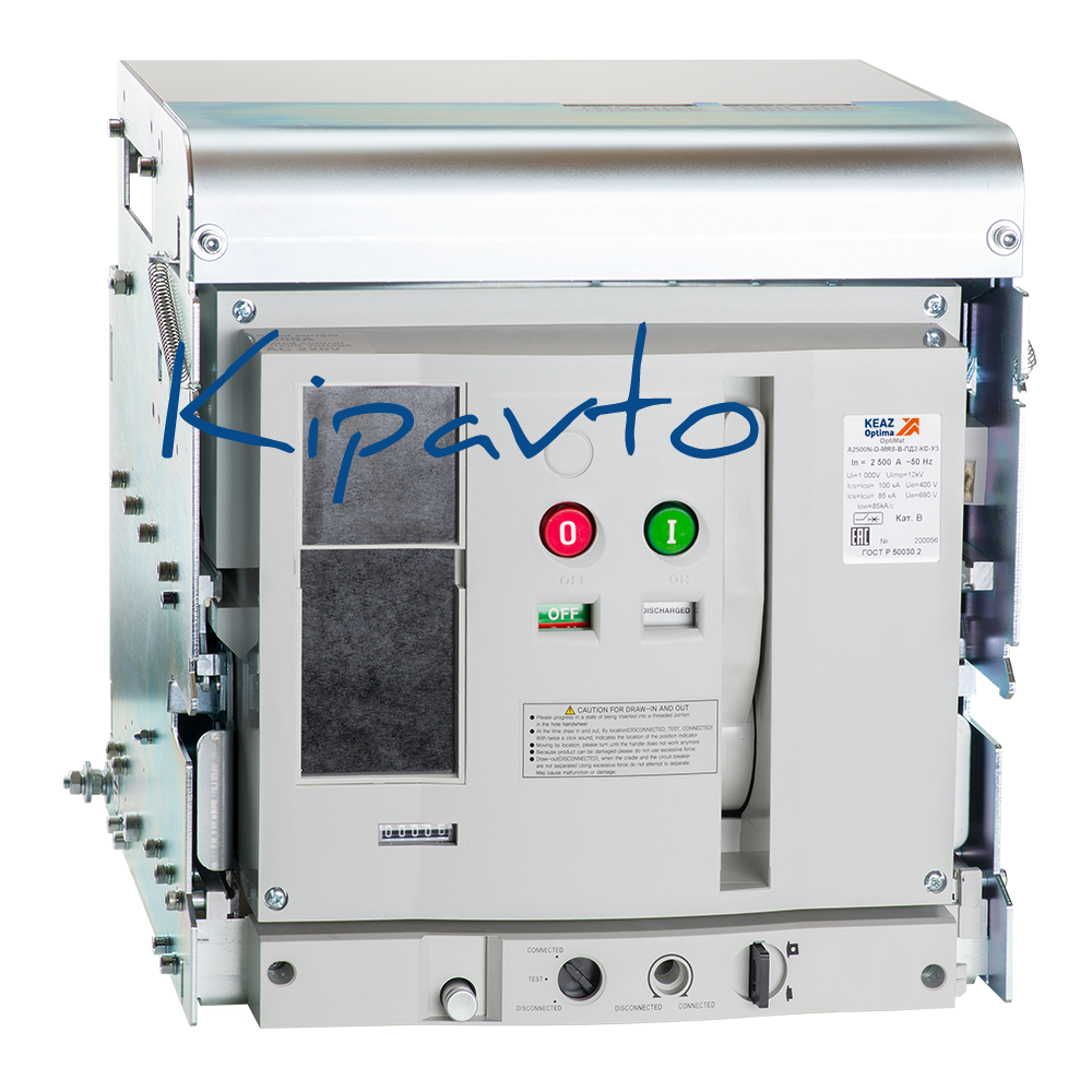 Силовой автоматический выключатель для защиты трансформаторов и генераторных установок. Возможность самостоятельного подключения дополнительных устройств. Наличие привода- ПД2 220V AC + ручной привод.