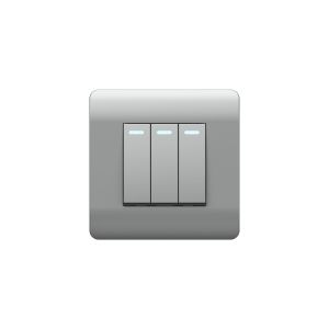 Переключатель 3-клавишный с подсветкой, 10А (NEW3-E), серебряный
