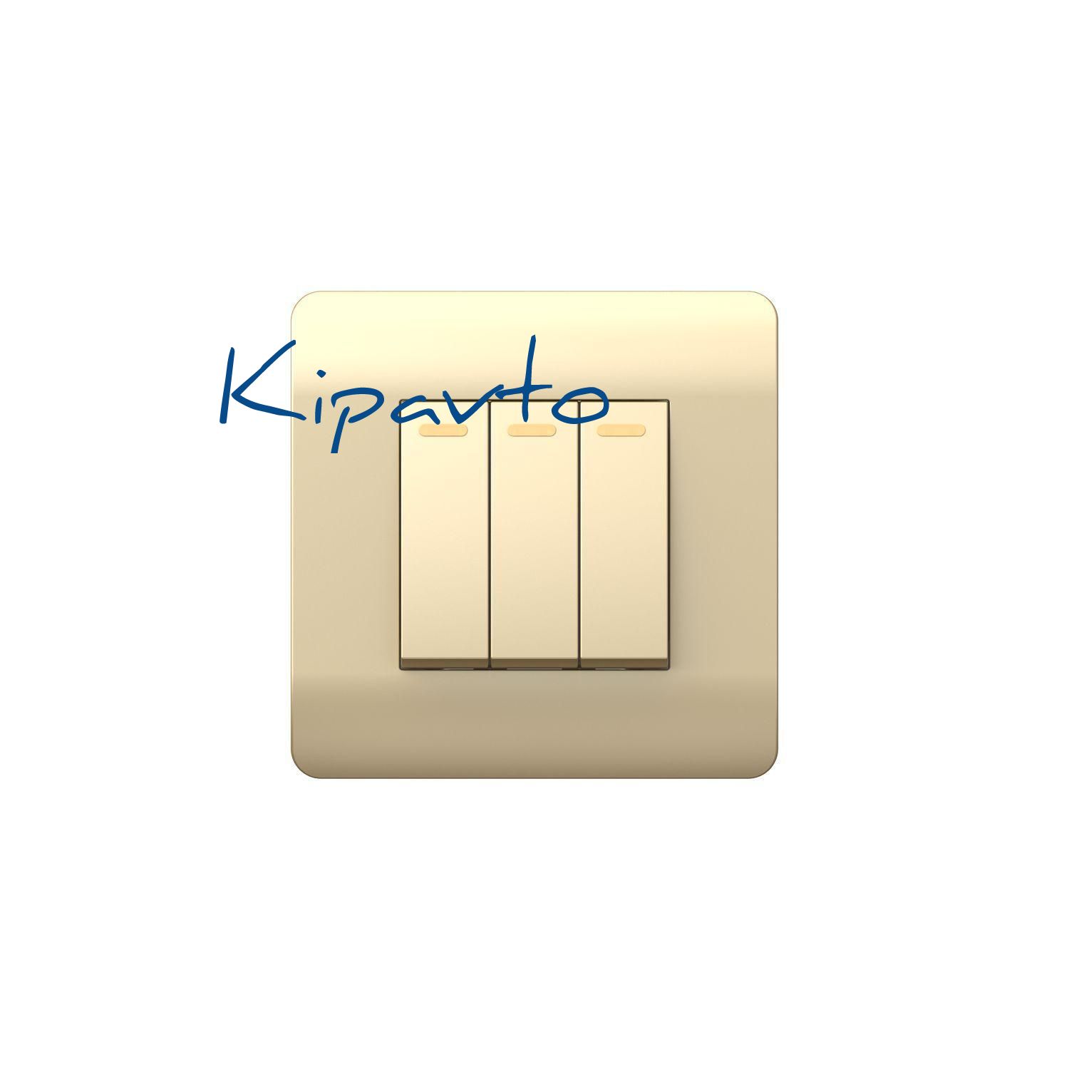 Переключатель 3-клавишный с подсветкой, 10А (NEW3-E), шампань
