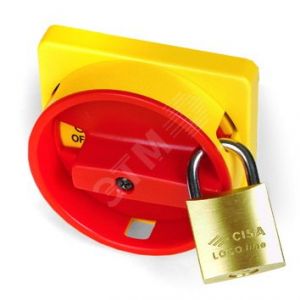 Площадка желтая + красная ручка 67х67мм модель 42 отверстие 22мм для серии АМ