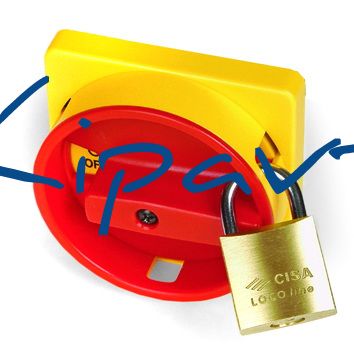 Площадка желтая 67х67 - красная ручка B64 22мм с замком для серии А
