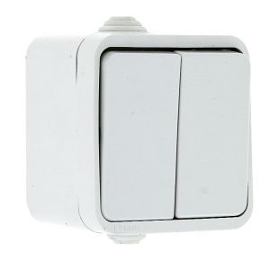 Прага Выключатель двухклавишный 10А IP44 белый