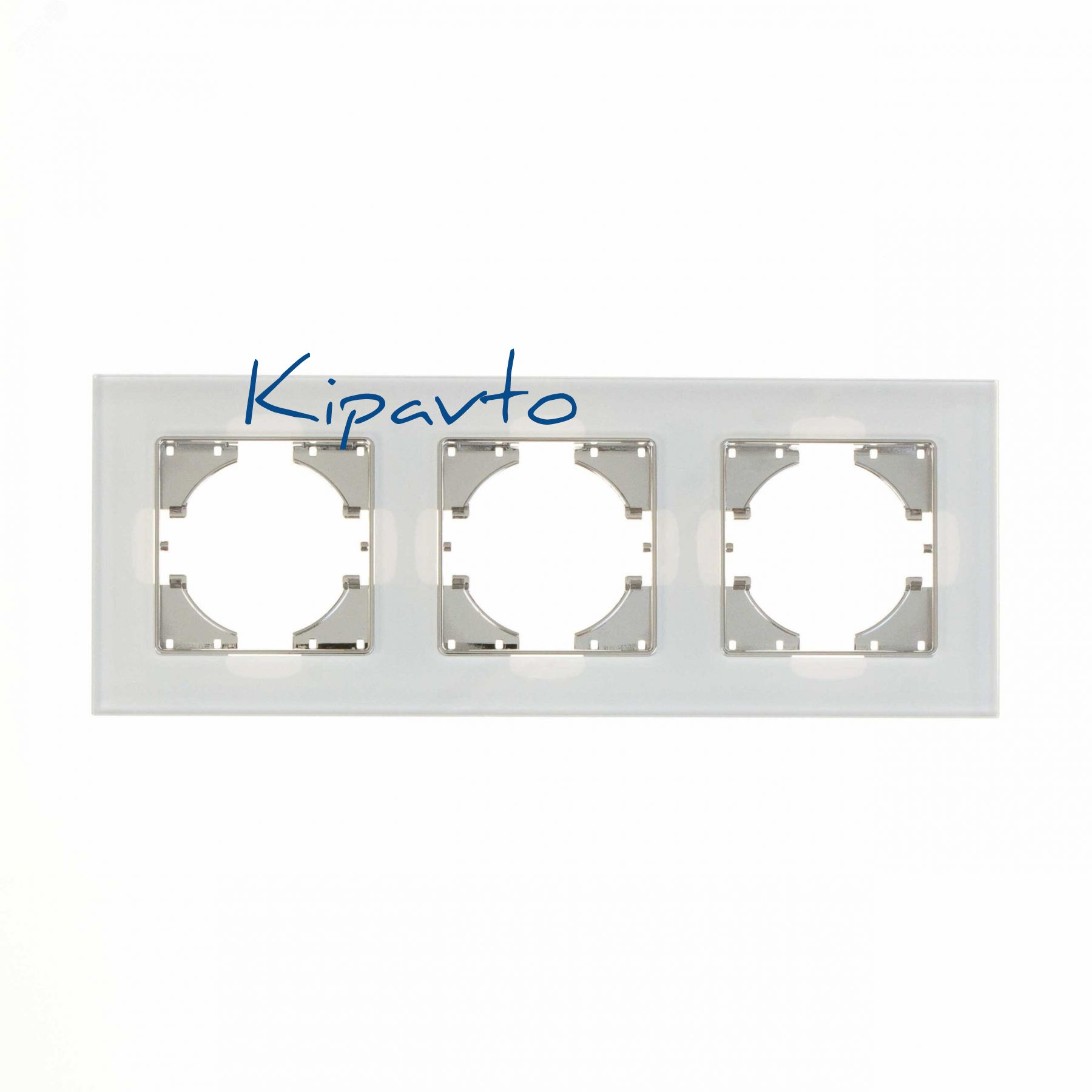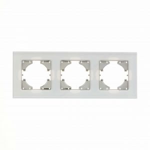 UGRA РАМКА С1130-0ХХ 3-местная, стекло. 3-постовая рамка из закаленного стекла, горизонтальная, совместима с изделиями серии UGRA. Последние три цифры обозначают цвет изделия. ''ХХ'' в обозначении представляют собой цифры от 01 до 50 соответствующие цвету внешних элементов (030-белый, 031-черный, 032-шампань, 033-коричневый).
