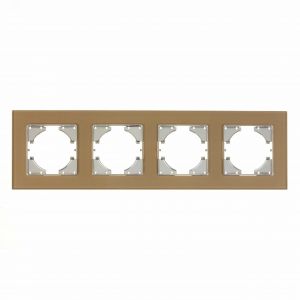 UGRA РАМКА С1140-0ХХ 4-местная, стекло. 4-постовая рамка из закаленного стекла, горизонтальная, совместима с изделиями серии UGRA. Последние три цифры обозначают цвет изделия. ''ХХ'' в обозначении представляют собой цифры от 01 до 50 соответствующие цвету внешних элементов (030-белый, 031-черный, 032-шампань, 033-коричневый).