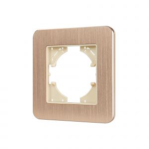 Рамка из серии AKIRY представляет собой комбинацию в виде основы из тугоплавкого пластика и 3-х миллиметровой накладки из алюминиевого сплава. Корпус выполнен в золотом цвете и сатинированной поверхностью с высотой 7мм, что позволяет гармонично встроить в интерьер любого современного дизайн-проекта. Невидимая часть из тугоплавкого пластика, для надежной фиксации механизма. Грани алюминиевой накладки аккуратно обработаны и отшлифованы, чтобы обезопасить пользователя при установке и демонтаже. Рамка предназначена под встраиваемые механизмы.
