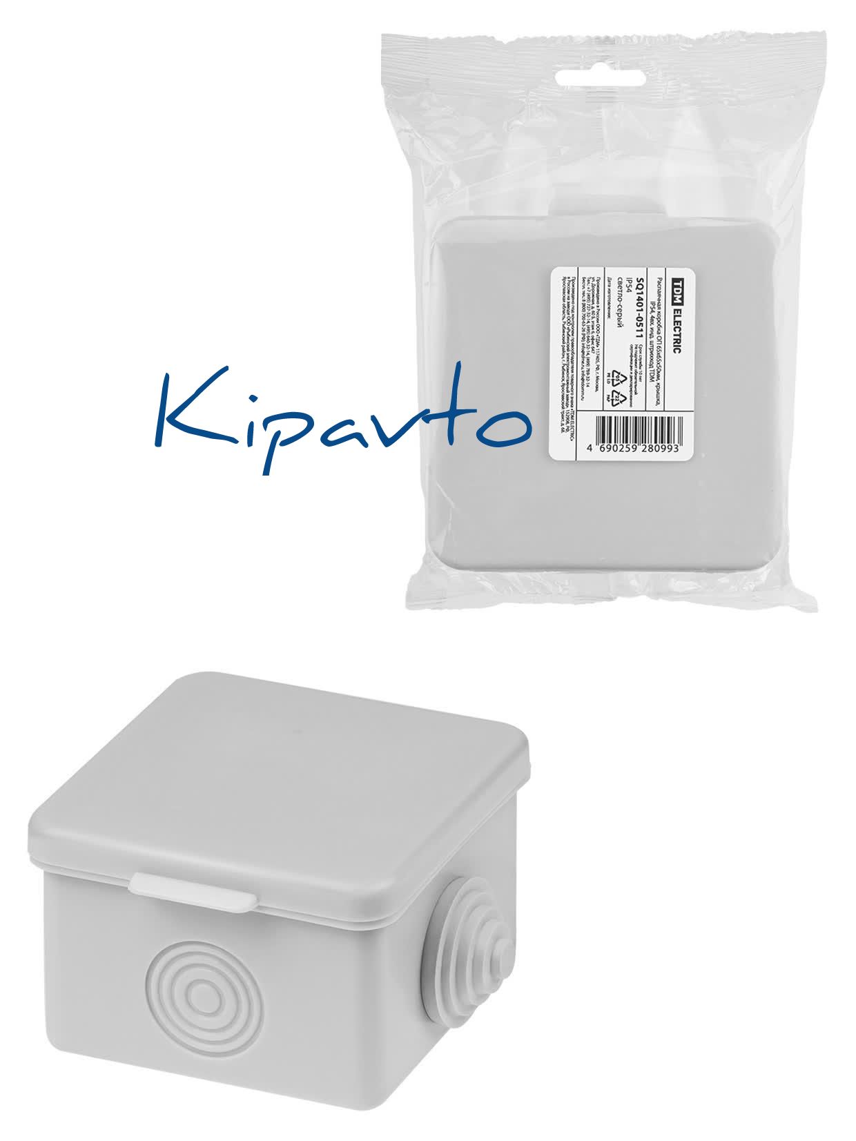 Распаячная коробка ОП 65х65х50мм крышка IP54 4вх. инд. штрихкод TDM
