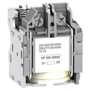 Независимый расцепитель НР ВА55-PRO 250AF/630AF, AC400V отключает автоматический выключатель при поступлении импульсной (20 мс) или непрерывной команды. При подаче напряжения в цепь управления расцепителем НР происходит отключение автоматического выключателя. Гарантированное отключение происходит, если напряжение управления превышает 0,7xUном.