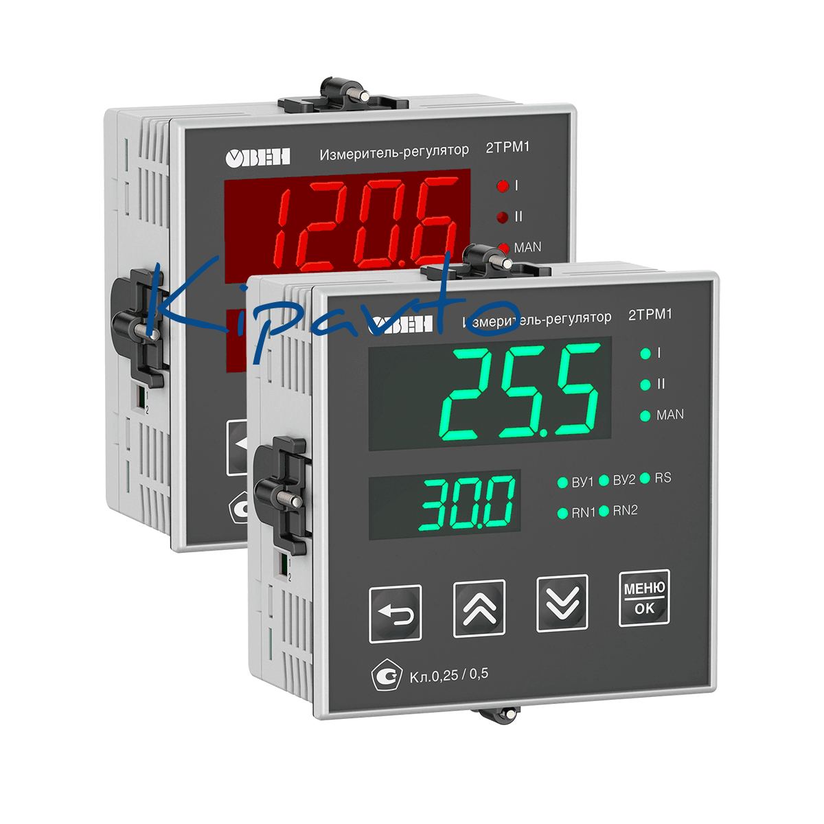 2ТРМ1 – двухканальный цифровой терморегулятор, предназначенный для измерения, регистрации или автоматического регулирования температуры, а также других физических величин (давление, влажность, уровень, расход и т.д.). Отличительной особенностью прибора является наличие двух независимых каналов управления. Прибор осуществляет как независимое управление по двум каналам, так и совместную работу каналов в задачах регулирования и сигнализации. Наличие второго входа позволяет выполнять регулирование по двум величинам с вычислением среднего значения или разницы показаний входов. Двухканальный терморегулятор 2ТРМ1 работает с разными типами датчиков что позволяет одним прибором контролировать две физические величины, например температуру и давление, температуру и влажность, давление и уровень. Наличие RS-485 позволяет выводить все измеряемые и настраиваемые параметры прибора в сеть диспетчеризации предприятия. Количество выходов: 2 Число выходов: 2 Комплектация: прибор|уплотнительная прокладка|паспорт и гарантийный талон|руководство по эксплуатации|комплект крепежных элементов|шаблон-трафарет для отверстий щитовых корпусов